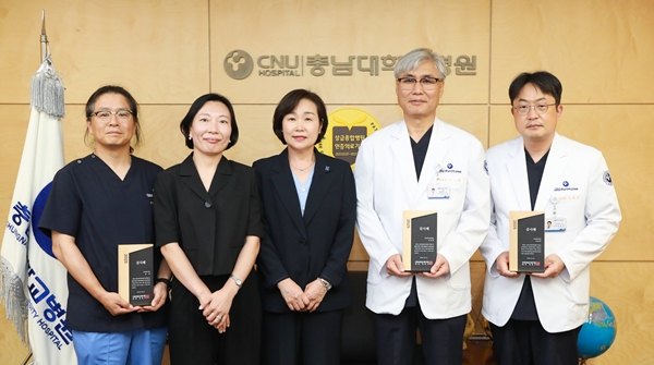 [충청뉴스 이성현 기자] 충남대병원은 조강희 병원장과 복수경 재활의학과 교수, 김용민 이비인후과 교수, 강찬 정형외과 교수가 건강보험심사평가원 창립 25주년을 맞아 건강보험제도의 지속가능성과 국민보건 향상에 기여한 공로를 인정받아 감사패를 받았다고 11일 밝혔다.