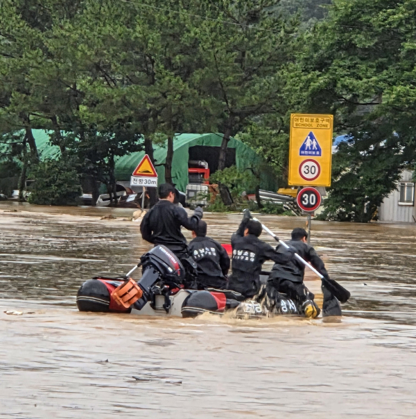 서산소방서 등에 따르면 서산시 석남동 도로에서 차량이 물에 잠겼다는 신고가 접수돼 침수 차량에 탑승한 심정지 상태의 50대 남성을 구조해 인근 병원으로 이송했으나 사망했다.