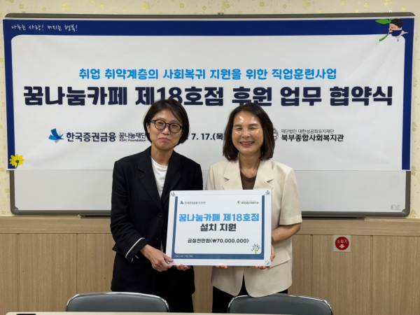 이번 협약을 통해 (재)한국증권금융꿈나눔재단은 북부종합사회복지관에 7천만 원(₩70,000,000)의 설치 지원금을 전달했다.