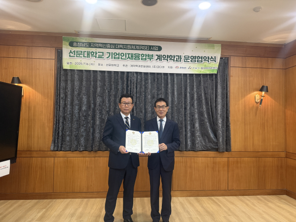 문성제 총장은 “AI와 전기차 기술이 융합되는 시대에 선문대는 지역 산업과 함께 미래를 설계하는 거점 대학으로 성장하고 있다”며, “이번에 신설되는 학과는 산업 현장과 교육이 함께 진화하는 혁신 모델이 될 것”이라고 말했다.