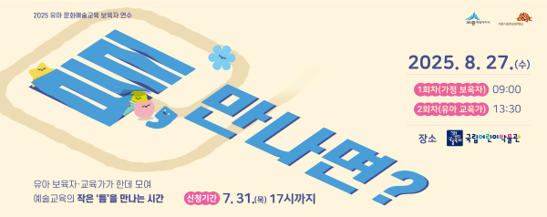 [충청뉴스 최형순 기자] 세종시문화관광재단(대표이사 박영국)이 2025년 유아 문화예술교육 보육자 연수 프로그램 <틈, 만나면?>의 참여자를 오는 7월 31일까지 모집한다.