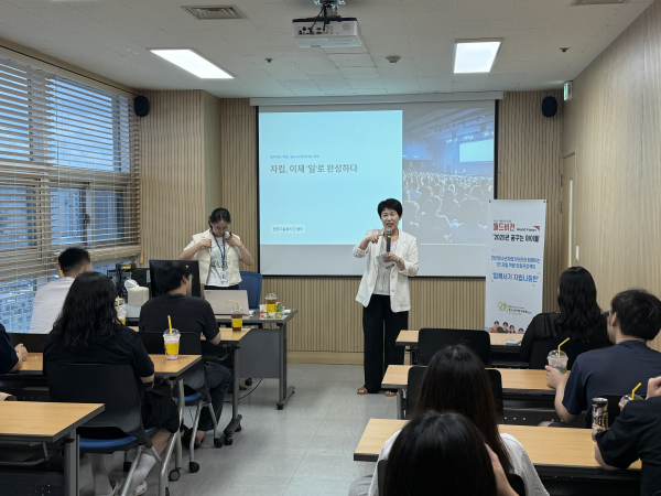 강사가 청년 자립의 프로그램 참여활동에 대해 설명하고 있다