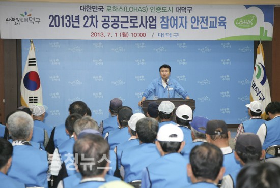 대덕구(구청장 정용기)는 1일 구청 중회의실에서 2013년 2차 공공근로사업 참여자 85명을 대상으로 안전교육을 실시했다.