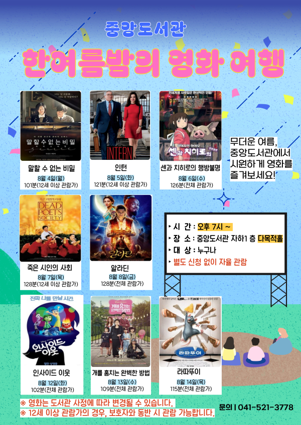 천안중앙도서관, 8월 ‘한여름밤의 영화 여행’ 상영
