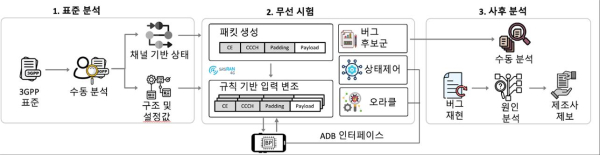 기존 보안 연구들이 주로 NAS(네트워크 액세스 계층)와 RRC(무선 자원 제어) 등 이동통신 상위계층에 집중되었다면, 연구팀은 제조사들이 소홀히 다뤄온 이동통신 하위계층의 오류 처리 로직을 집중적으로 분석했다.