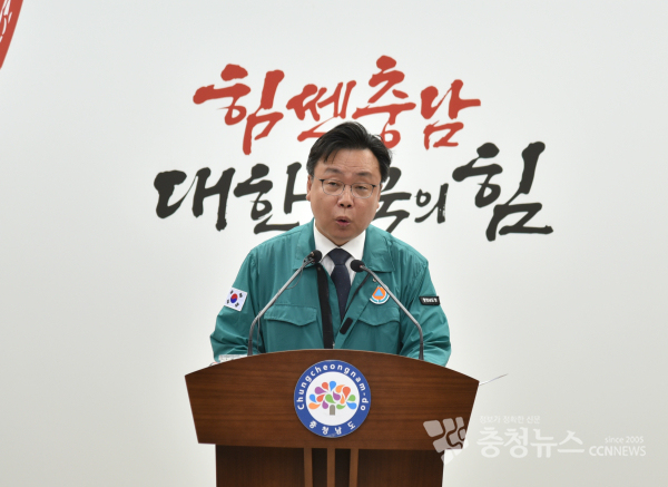기자회견 중인 김영명 충남도 환경산림국장. 사진 박영환 기자