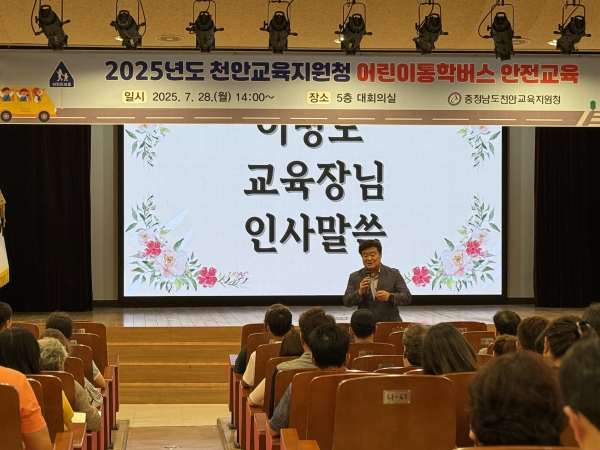 [충청뉴스 유규상 기자] 천안교육지원청(교육장 이병도)은 28일 천안 관내 학교(유치원) 어린이통학버스 운전자 및 동승보호자 등 100여 명을 대상으로 어린이통학버스 안전교육을 실시했다.