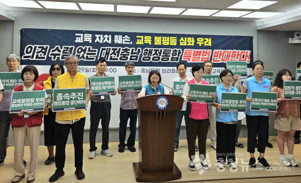 [충청뉴스 박영환 기자] 충남교육연대가 대전·충남 행정통합 특별법이 "교육감의 권한을 지방자치단체장이 침해하는 것"이라며 즉각 중단할 것을 촉구했다.