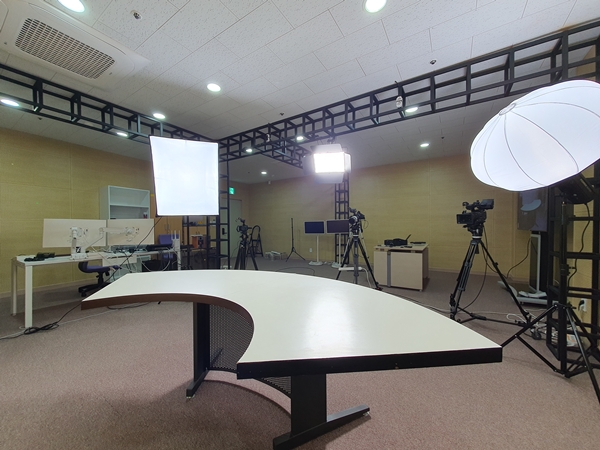 최근 리모델링한 콘텐츠 제작실은 1~2인이 출연하는 영상 제작에 최적화된 소규모 공간으로, 주변 소음이 차단된 안정적인 촬영 환경과 온라인 강의 영상을 송출할 수 있는 시설을 구비하고 있다.
