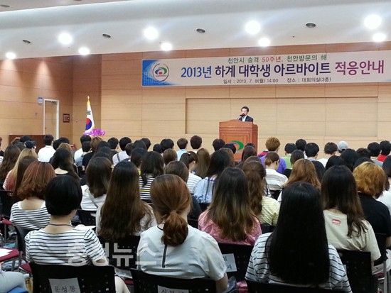 천안시(시장 성무용)가 2013년 하계 아르바이트 대학생 150명을 선발하고 8일부터 현업부서에 배치, 근무를 실시한다고 밝혔다.