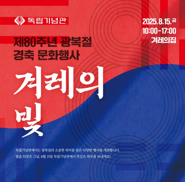 [충청뉴스 유규상 기자] 독립기념관(관장 김형석)은 제80주년 광복절을 맞아 다양한 이벤트 행사를 준비한다.