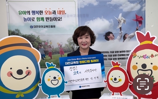 [충청뉴스 이성현 기자] 대전유아교육진흥원이 대전시교육청 ‘고위직과 함께 하는 청렴다짐 릴레이’ 캠페인에 동참했다고 1일 밝혔다.