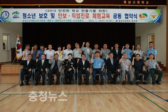 계룡시(시장 이기원)는 10일 오전 용남고등학교에서 관내 민‧관‧군‧경이 함께 모여 안전한 학교만들기를 위한 업무협약식을 가졌다.