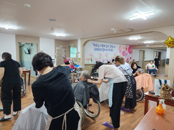 ‘행복울림 온결’회원들이 무지개동산요양원에서 미용 봉사활동을 진행했다.