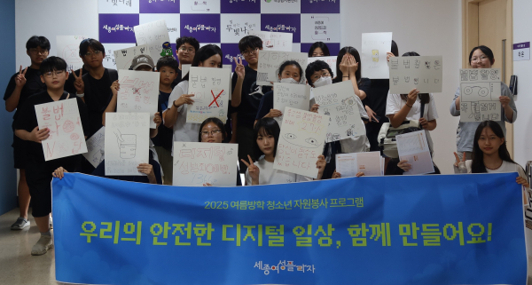 [충청뉴스 최형순 기자] 세종시사회서비스원이 운영하는 세종여성플라자(대표 홍만희)는 여름방학을 맞아 청소년들을 위한 특별한 자원봉사 프로그램 '우리의 안전한 디지털 일상 만들기'를 성공적으로 마쳤다.