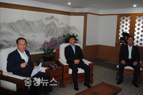 “정부에서 그만한 부지를 매입한다거나하는 과정을 통해서 신내포신도시 도청이전이 제대로 건설이 될 수 있도록 정부의 지원이 필요하다. 그래서 지금 그에 따른 도청 이전 특별법 개정안이 국회에 계류 중인데, 이 부분에 대해 지도부 분들께서도 적극 관심 지원 부탁드린다”고 목소리를 높였다.