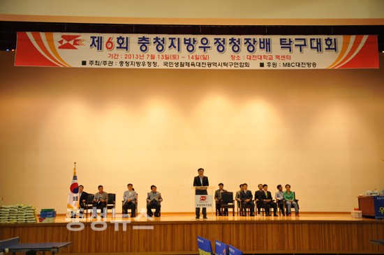 충청지방우정청(청장 이재홍)은 지난 13일 대전대학교 맥센터(실내체육관)에서 대전, 세종, 충청지역 탁구동호인 1,500여 명이 참가한 가운데 ‛제6회 충청지방우정청장배 탁구대회'를 개최 했다고 14일 밝혔다.