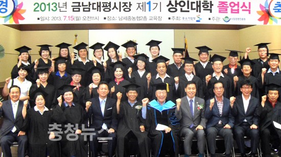 세종시 상인들이 대형마트에 밀려 철폐위기를 극복하고 다시금 소비자의 발길을 돌리기 위해 고군분투한 결과, 15일 세종금남농협 회의실에서 금남대평시장 ‘상인대학’상인 33명이 졸업을 맞이했다.