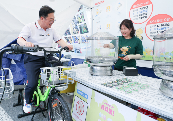 대전시는 8일부터 16일까지 중앙로역 이벤트 부스에서 ‘타슈 자전거 타고 솜사탕 만들기’를 진행 중이다.