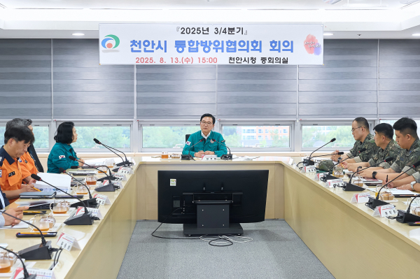 [충청뉴스 유규상 기자] 천안시는 지난 13일 시청 중회의실에서 ‘2025년 3분기 통합방위협의회’를 열고 을지연습·화랑훈련 준비태세를 점검했다.