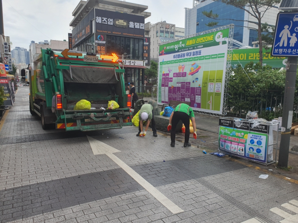 민원대응반은 행사장 내 무단투기 여부, 분리수거 거치대 적치 상태, 공중화장실 청소 상태 등을 수시로 점검했다. 구별 단체카톡방에 사진과 상황을 공유하면 기동반이 즉시 수거·조치했으며, 올해 접수된 민원 건수는 단 1건에 불과했다.