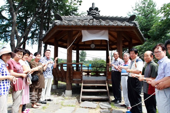 전민동 엑스포아파트 1단지 입구에 있는 마을정자에서 '정민역'의 역사적 가치를 기리기 위해 정자이름을 '정민정'으로 명명하는 현판식이 22일 열렸다.