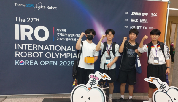 국제로봇올림피아드(IROC)는 국제 청소년 로봇대회로, 약 30여 개국이 참여하며 매년 수많은 학생이 실력을 겨루는 글로벌 플랫폼으로 AI 휴봇 부문에서 이순신고는 금상 1팀(박민준, 황종혁), 테크니컬상 2팀(강지민, 홍준성/이동권, 정혜인)이 수상함으로써 의미 있는 결과를 이뤄냈다.