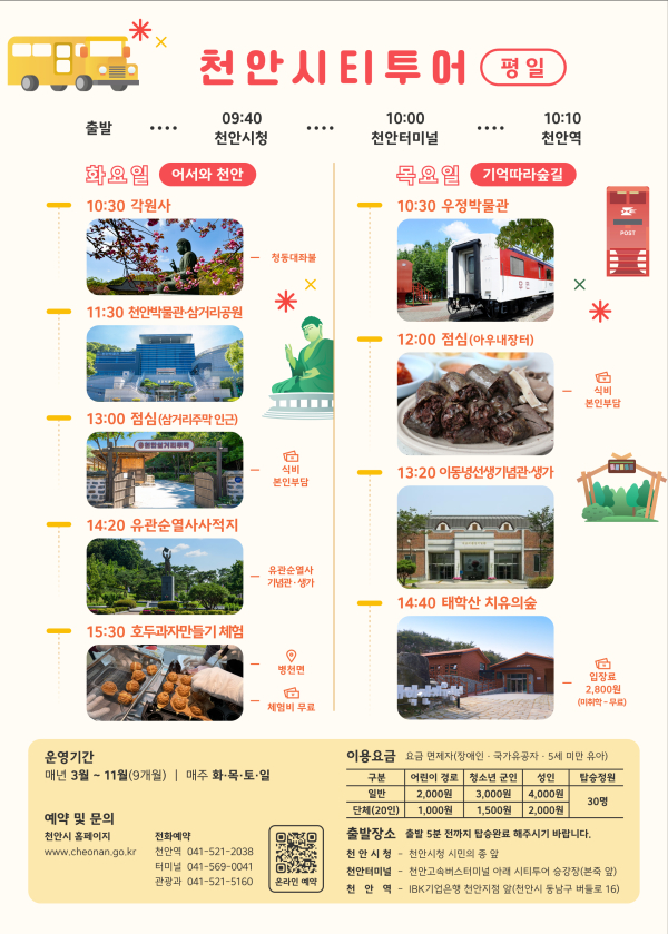 ‘2025 가을철 천안시티투어’ 코스(평일)