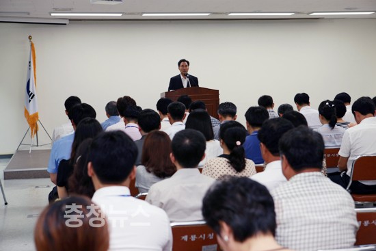 충남 계룡시(시장 이기원)는 31일 오전 8시 50분 시청 회의실에서 이기원 시장을 비롯해 직원과 시민 등 1백여명이 참석한 가운데 8월중 직원모임을 가졌다.