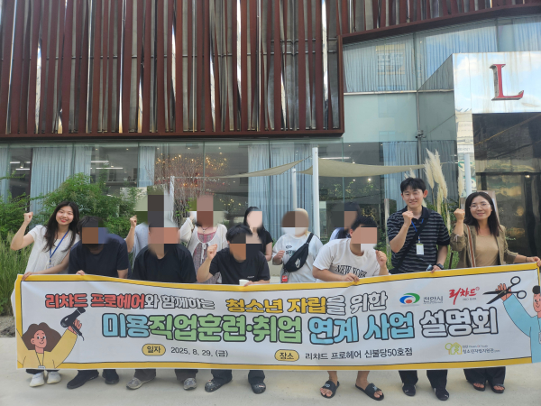 [충청뉴스 유규상 기자] 천안시는 리차드 프로헤어 신불당50호점과 학교·가정 밖 청소년을 대상으로 ‘미용 직업훈련·취업 연계사업’을 진행하며, 학업 중단이나 가정 해체 등으로 인해 사회 진입에 어려움을 겪는 만 18세 이상의 학교·가정 밖 청소년의 자립을 돕는다.