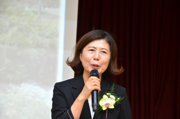 김은경 영인면장이  주민자치회의 노고를 치하하는 축사를 하고 있다