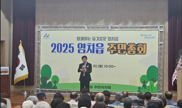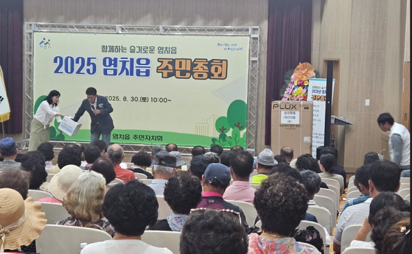 주민총회를 주관한 홍문기 주민 자치회 회장은 인사말을 통해 "그동안 주민자치회 활동을 열심 해 온 주민들에게 감사드린다"면서, "주민총회를 통하여 화합되고 단결하는 염치읍을 만들자"고 제안했다.
