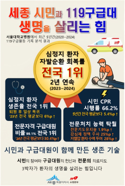 한편, 세종소방본부는 시민 대상 심폐소생술 교육을 확대하고, 구급장비 보강 및 구급대원 전문역량 강화를 지속 추진할 방침이다.