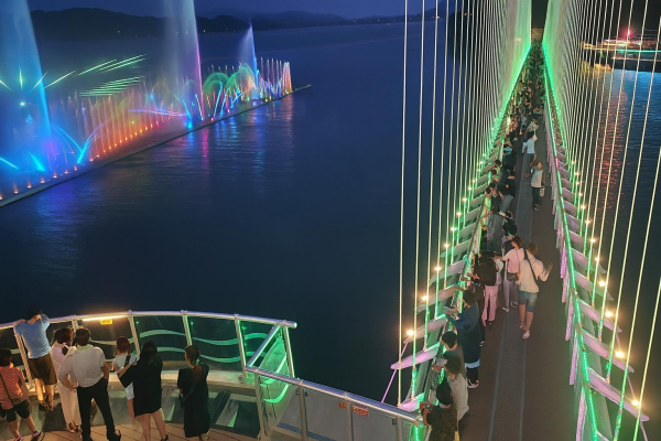 [충청뉴스 박영환 기자] 예산군은 예당호 출렁다리와 음악분수가 올여름 한층 업그레이드된 무대로 방문객을 맞이하고 있다고 8일 밝혔다.