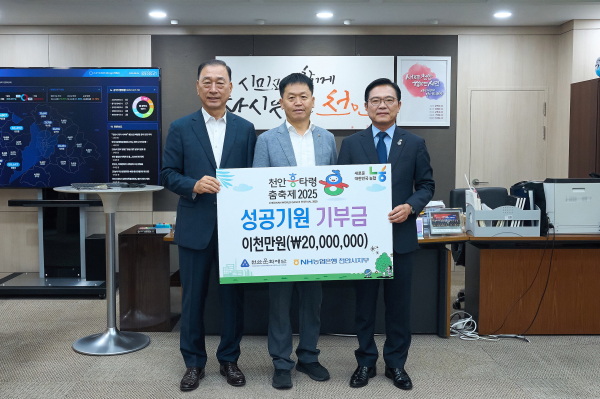 [충청뉴스 유규상 기자] NH농협은행 천안시지부는 9일 천안흥타령춤축제 2025의 성공적인 개최를 위해 기부금 2,000만원을 천안문화재단에 기탁했다.