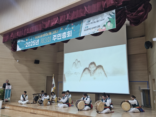 주민총회 현장에서는 주민자치회 1년 활동 성과가 공유됐으며, 솔바람풍물패의 사물놀이 공연과 송남중학교 댄스동아리 ‘뉴클리어’의 무대가 마련돼 세대를 아우르는 축제 분위기를 더했다.