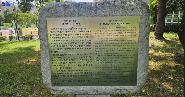 송영규 이사장이 주도해 천안에 세운 한국전쟁 당시의 미군 전쟁 추모비