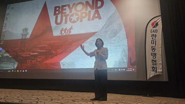 "비욘드유토피아" 다큐멘터리 상영후 주인공인 탈북자 이소연씨의 특강장면