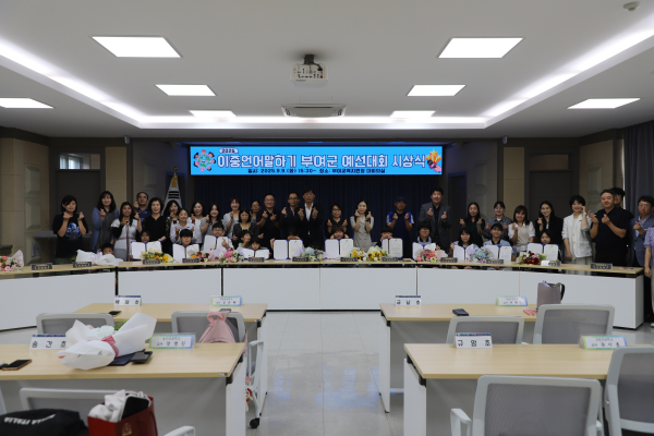 이번 시상식은 지난 8월 27일 2025 이중언어말하기 부여군 예선대회에 참가한 14명의 학생들의 시상식과 2명의 금상지도교사 표창 전수식이 진행되었다.