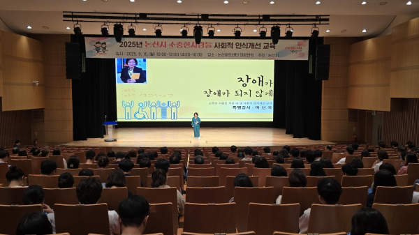 [충청뉴스 논산 = 조홍기 기자] 논산시(시장 백성현)는 15일 논산아트센터 대공연장에서 전 직원을 대상으로 ‘소중한사람들 인식 개선 교육’을 실시했다고 밝혔다. 이번 교육은 소중한사람들에 대한 올바른 이해와 긍정적 인식을 확산하고, 자율성과 존엄성을 존중하는 사회 분위기를 조성하기 위해 마련됐다.