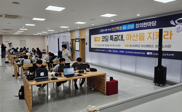 [충청뉴스 유규상 기자] 아산교육지원청(교육장 신세균)은 13일 호서대학교 아산캠퍼스 성재도서관에서 관내 초·중·고 19교 학생 28팀, 총 104명을 대상으로 2025 대학 연계 아산 학생 AI·SW 창의한마당을 운영했다.