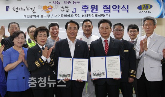 대전 동구(구청장 한현택)는 21일 구청 소회의실에서 향토기업인 모던종합상조(대표 남재광)와 ‘천사의손길 행복+ 운동’ 후원 업무협약을 체결하고 복지사각지대 어려운 이웃을 돕기 위해 상호 협력하기로 했다.