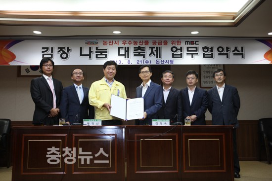 논산시(시장 황명선)는 21일 시청 상황실에서 국내 최대 사회공헌 프로젝트인 대한민국 김장나눔대축제에 강경젓갈 및 배추와 양념류 등 논산시 친환경 우수농산물을 공급하기 위해 대전MBC와 업무협약을 체결했다.