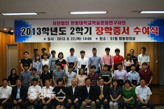 재단법인한밭대학교학술문화연구재단(이사장 이원묵)은 22일 한밭대 S1동(도서관) 1층 합동강의실에서 2013학년도 2학기 장학증서를 수여했다.