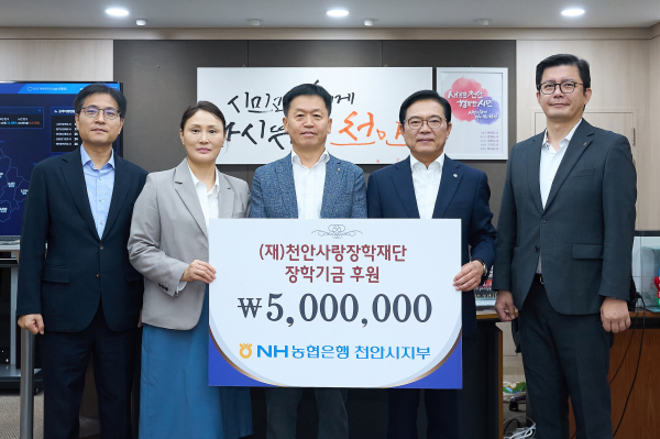 [충청뉴스 유규상 기자] (재)천안사랑장학재단은 19일 농협 천안시지부는 지역인재 육성과 교육 발전을 위해 500만원을 (재)천안사랑장학재단에 기탁했다.