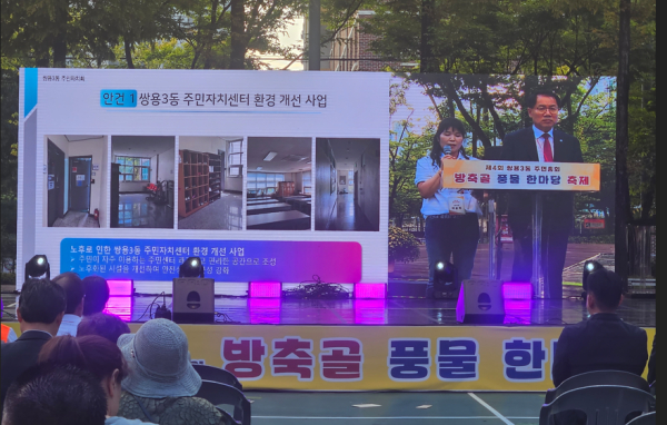 [충청뉴스 유규상 기자] 천안시 쌍용3동은 지난 20일 주민자치회가 주관하는 제4회 주민총회 및 방축골 풍물 한마당 축제를 열고 주민들이 직접 제안한 생활밀착형 사업을 공유하고, 내년에 추진할 사업을 확정했다.