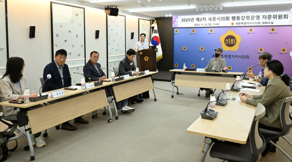 [충청뉴스 최형순 기자] 세종특별자치시의회(의장 임채성)는 22일 시의회 대회의실에서 '2025년도 제2차 행동강령운영자문위원회'를 개최하고, 의회 청렴도 향상을 위한 제도 개선 방안을 논의했다.