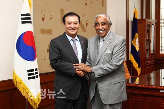 강창희 국회의장은 26일 오전 의장집무실에서 정부가 마련한 미의원교류사업에 따라 방한 중인 찰스 랭글(Charles RANGEL) 미국 하원의원(민주당)을 접견하고 양국 의회 간 협력 증진 방안 등 공동 관심사에 대해 의견을 나눴다.