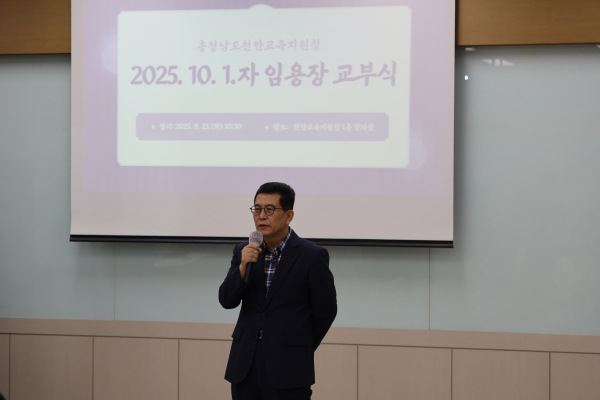 [충청뉴스 유규상 기자] 천안교육지원청(교육장 차덕환)은 23일, 2025년 10월 1일자 인사발령에 따른 전입·신규 공무원 임용장 교부식을 가졌다.
