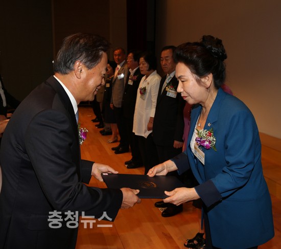 충남교육청(교육감권한대행 부교육감 전찬환)은 29일 오후 도교육청 대강당에서 퇴임교육공무원 및 가족들이 참석한 가운데 2013년 8월말 퇴임 교육공무원에 대한 정부포상 전수식을 거행했다.